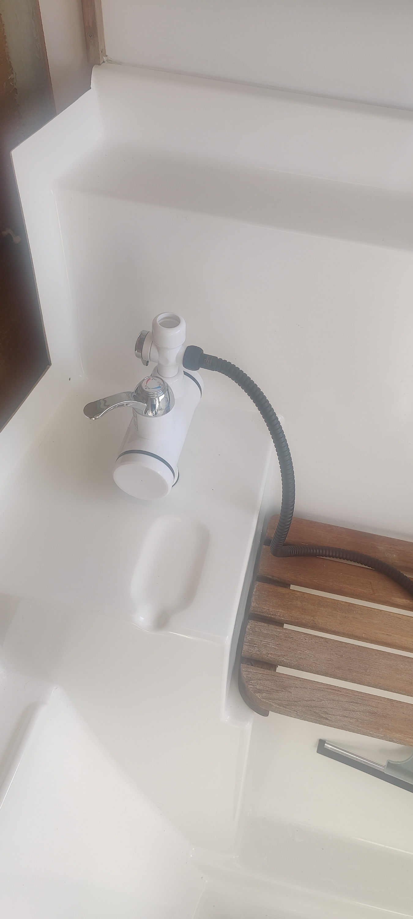 Letztes Jahr hatte ich mir eine Duscharmatur mit integriertem Durchlauferhitzer gekauft. Jetzt ist er eingebaut und läuft klasse. Warmes Wasser sofort. Welch ein Luxus!