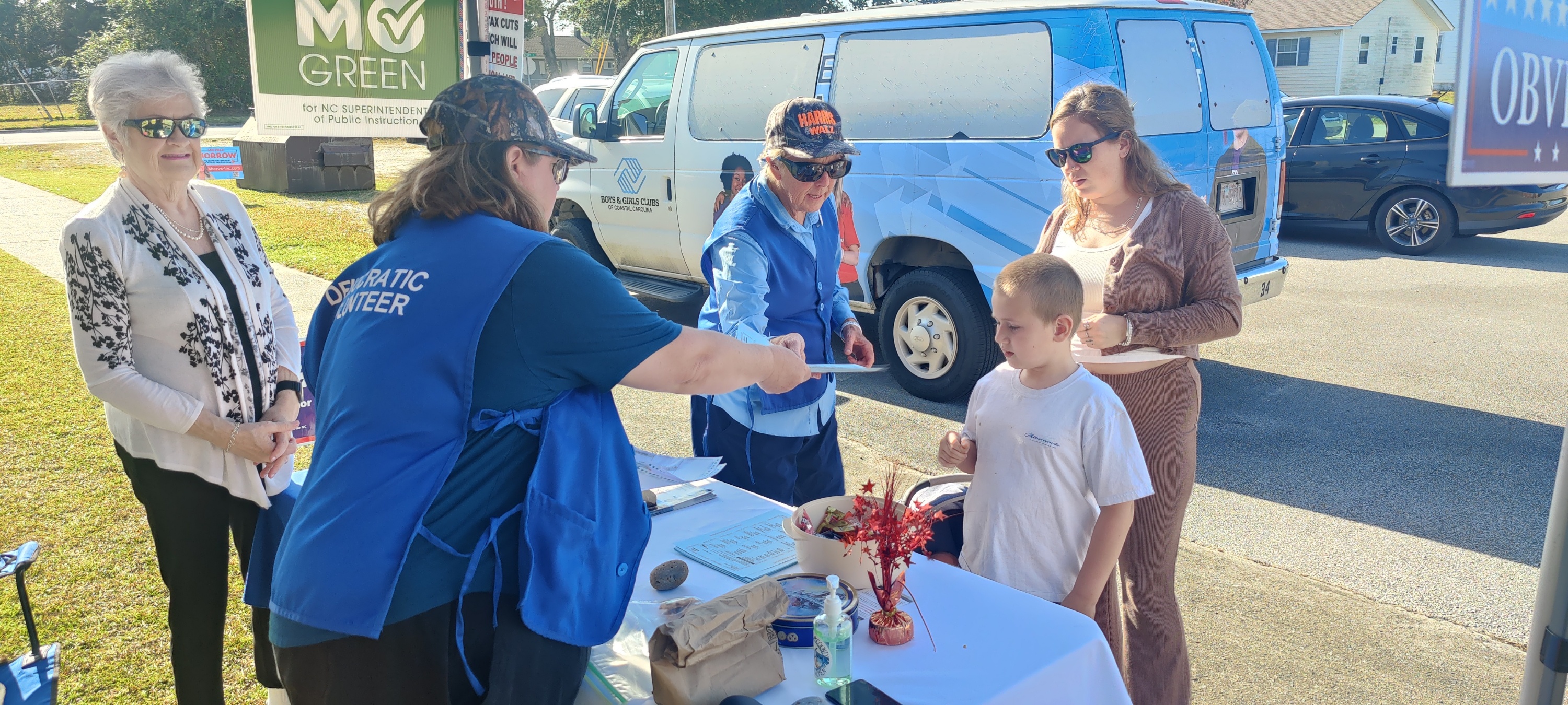 Bei den Demokraten war es etwas anders. Wir wurden nicht so herzlich empfangen, wie bei den roten. Das war vielleicht auch der Reihenfolge geschuldet. Während wir am Stand waren, kamen mehrere Frauen, die zum ersten mal zur Wahl gingen.(Bei den roten gab es während unseres längeren Gespräches nur einen Interessierten!)