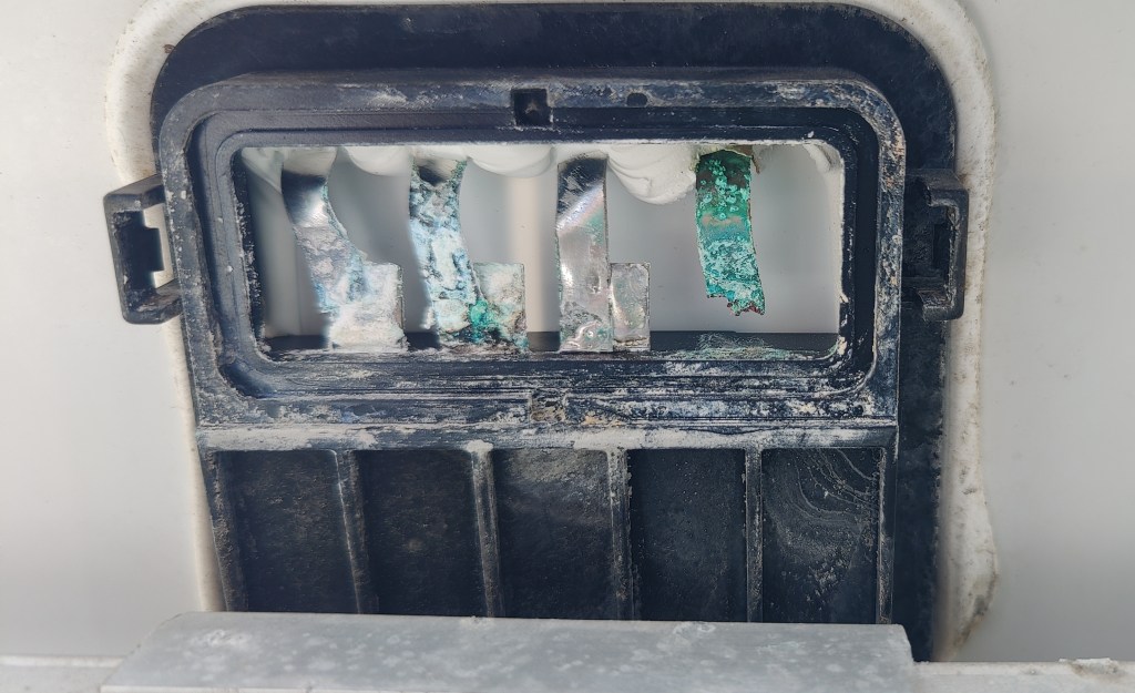 Die Anschlüsse sind ordentlich korrodiert.🙈 Da ist eigentlich Garantie drauf aber hier in USA??? Da steht wohl ein Reparaturversuch an und evtl. neue Paneele im nächsten Sommer.