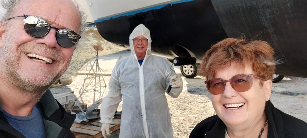 Brigitte und Frank sind fleißig dabei die Obelix startklar zu machen. Frank hat sich, genau wie bei mir vor zwei Wochen eine üble Erkältung zugezogen. Das bremst den Fortgang der Arbeiten erheblich. Da hab ich dann etwas mitgeholfen das Unterwasserschiff abzuschleifen. Jetzt sind die übelsten Arbeiten erledigt.