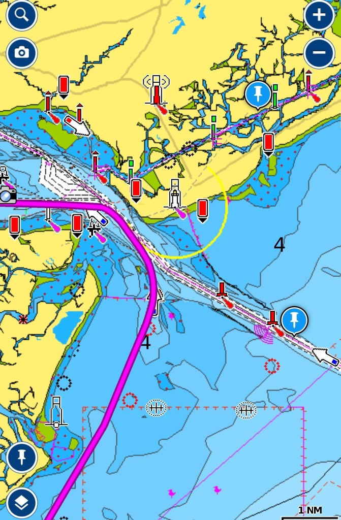 Die restliche Fahrt geht ruhig, wir sind etwas früher als geplant am St. Marys Inlet, der Strom steht also gegen uns, aber ohne Wind ist es entspannt. Langsam schieben wir durch die Zufahrt und kommen am frühen Abend im Ankerfeld vor St. Marys an.