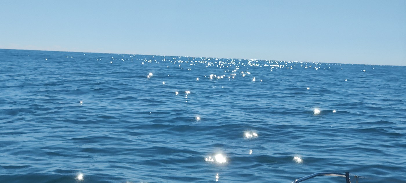 Die Sonne bollert wie bekloppt und zaubert ein Feuerwerk auf das Wasser. Unglaublich schön! Haben wir so schön bisher noch nie erlebt!🍀