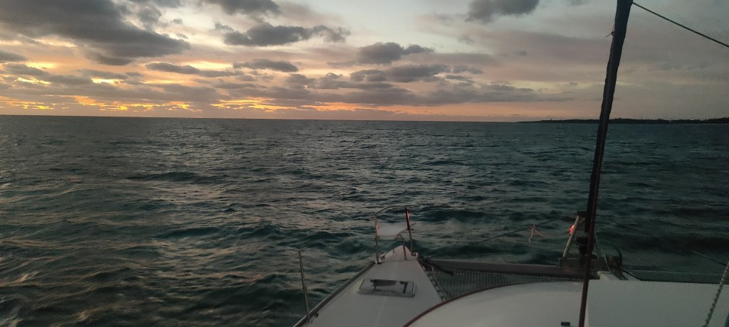 Für den 2. Januar ist guter Wind aus Nord, 10 – 15 kn angesagt bei moderater Welle. Das wollen wir zusammen mit der Crew der Obelix nutzen. Es kommt eine Kaltfront aus Nord und das ist nix für uns. Die Strecke geht gut 50 nm, das bedeutet je nach Wind 8 bis 10 Stunden Fahrzeit. Wir wollen bei gutem Tageslicht in Eleuthera ankommen, also müssen wir (Winter!) früh los. 6:00 ist angesagt, es ist stockdunkel.