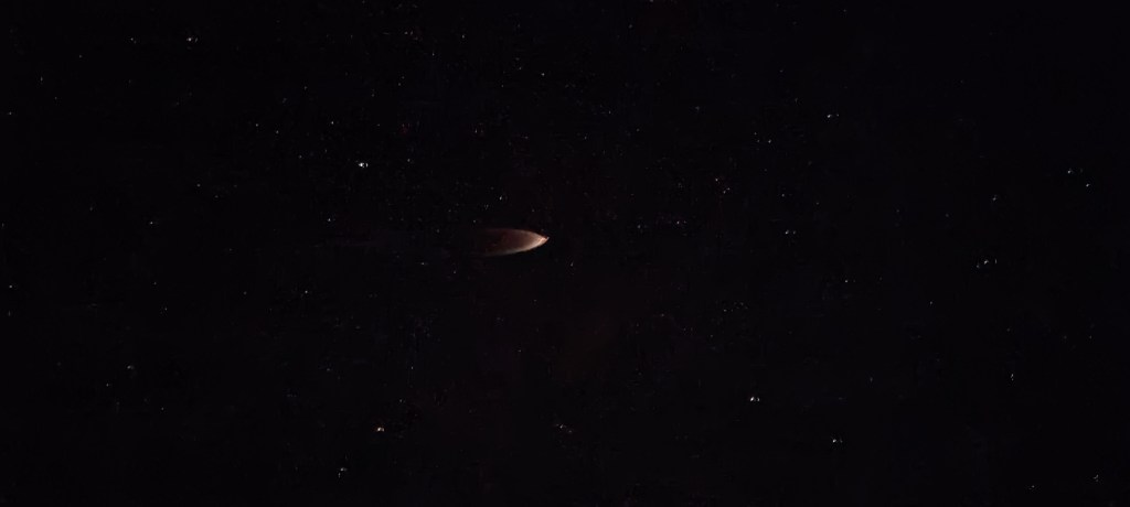 Bei sternenklarem Himmel fliegt die obere Stufe an uns vorbei.